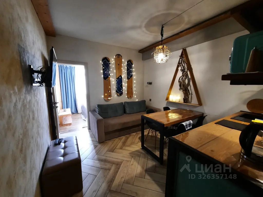 Апартаменты вмещают 4 человека. Изолированная спальня с двуспальной кроватью и кухня-гостиная с раскладным диваном.