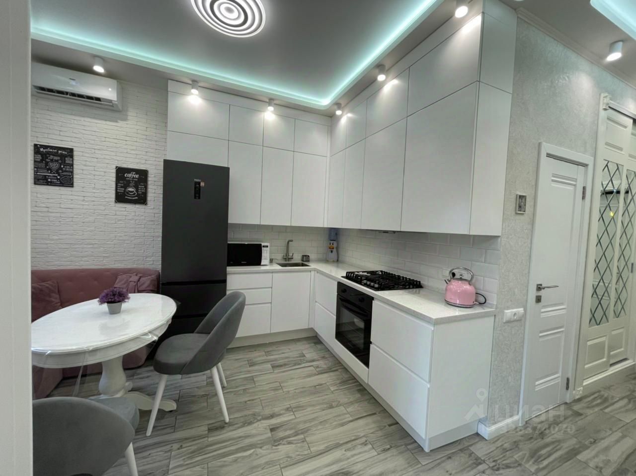 Квартира полностью меблирована, есть вся необходимая бытовая техника, теплые водяные полы, интернет, кондиционер,вайфай.