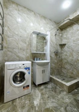 Smart ТV, холодильник, кондиционер, санузел с душем, стиральная машина, современная оборудованная кухня с набором посуды, микроволновая печь, гладильная доска, утюг, сушилка для одежды.