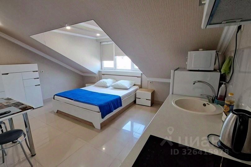Небольшая студия на 4 этаже, в квартире есть все необходимое для комфортного отдыха. Сан узел, кухня, двухспальная кровать, телевизор, кондиционер, шкаф для белья, комод, обеденный стол, фен.