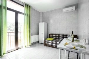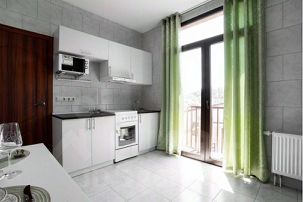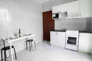 В апартаментах две кухонные зоны с набором бытовой техники: холодильник, электроплита с духовкой, вытяжка, микроволновка, электрочайник, посуда, столовые приборы. Два с/у с душем. Два стола, 8 стульев, два шкафа-купе, вешалки для одежды, две двуспальные кровати 160*200см, два двуспальных раскладных дивана 140х200см, два ТВ, четыре кондиционера.