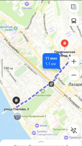 До моря 10-15 минут прогулочным шагом по улице Павлова к центральному пляжу мимо парка аттракционов. в двух шагах магазин Магнит, рынок,кафе,аптеки,напротив дома Храм.