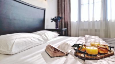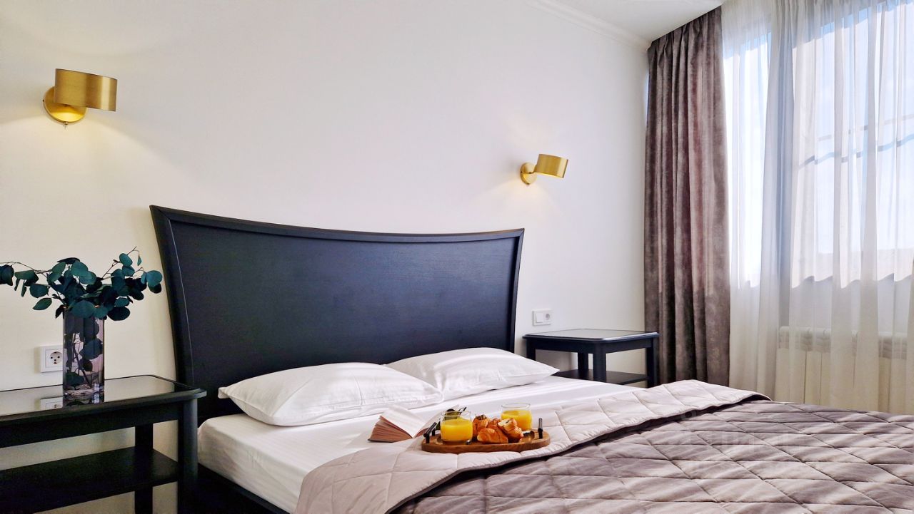 Утюг, фен, пылесос, постельное бельё, полотенца, средства личной гигиены.
