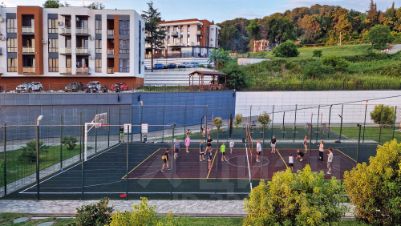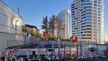 Детские, спортивные площадки, теннисный корт, баскетбольная площадка, сезонный бассейн