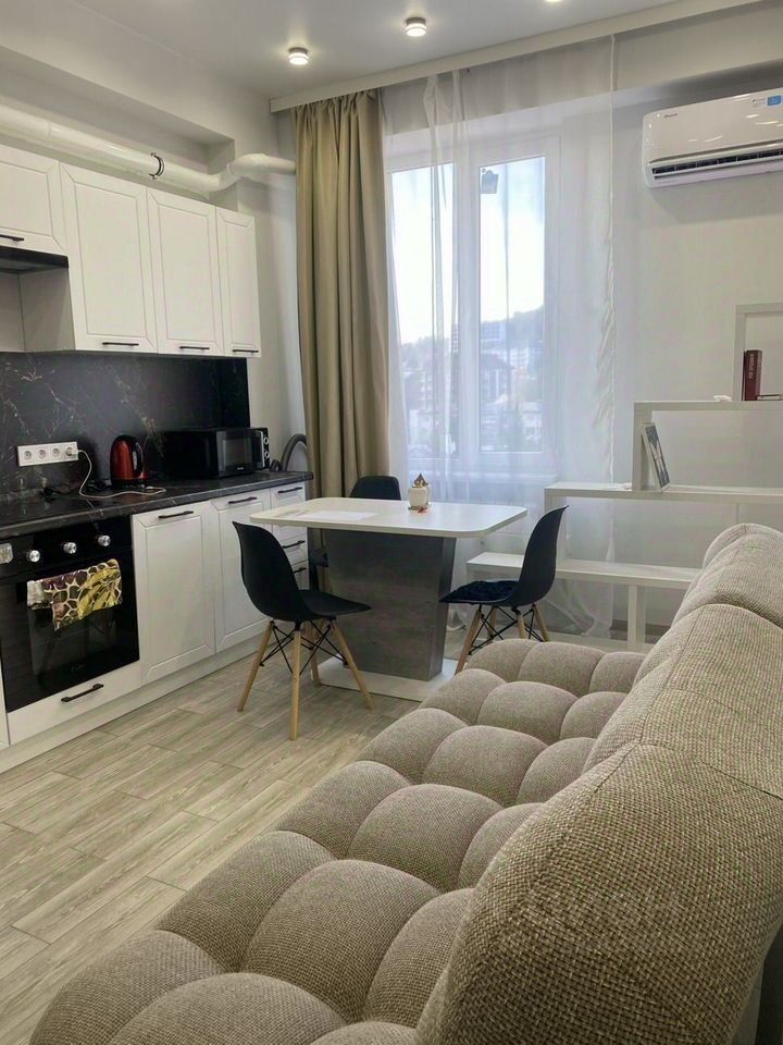 Сдаётся уютная квартира с красивым видом на горы и море с 9-го этажа. В наличии: новая кухня, двух спальная кровать за перегородкой, и двухместный диван и хороший санузел с душевой кабиной. Зaкрытая пpидoмовая тeрритoрия, парковки для aвтoмaшин, дeтcкие и спoртивные площадки, охрана и видеонаблюдение. В шаговой доступности гипермаркет Магнит, ТЦ Павловский, рынок, столовые и кафе. Рядом аквапарк Наутилус, парк культуры и отдыха. До 4 человек.