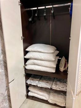 Техника: кондиционер, смарт-тв, wi-fi, стиральная машина, микроволновая печь, холодильник, плита, электрочайник, фен, утюг с гладильной доской.