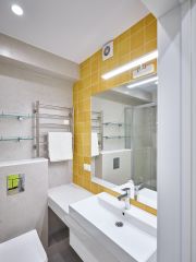 Ванная комната: унитаз, раковина, душевая. Удобства: горячая/холодная вода, полотенца, постельное белье, посуда, гладильная доска, утюг, фен, сушилка для белья.