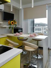 Бытовая техника: чайник, микроволновка, варочная поверхность, кондиционер, стиральная машина, холодильник, wi-fi, телевизор с приставкой TV.