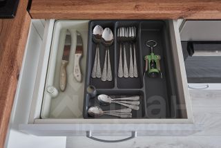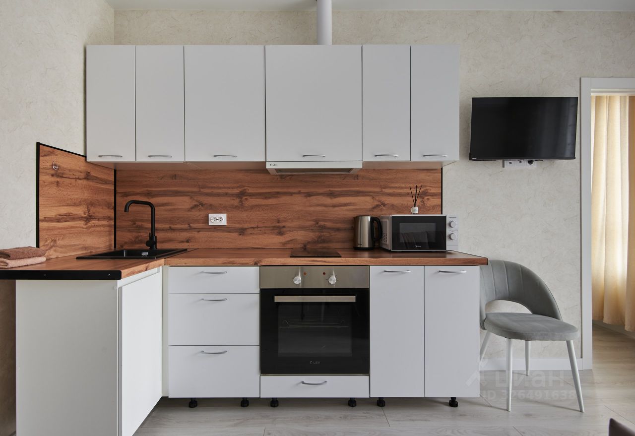 Кухонная зона — СВЧ, холодильник, чайник, плита, духовой шкаф.