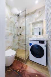В вашем распоряжении комфортабельная кровать для двоих и раскладное кресло-кровать для одного гостя. В наличии все необходимые удобства: кондиционер, быстрый Wi-Fi, телевизор, оборудованная кухня с полным набором посуды и бытовой техники, свежее постельное белье, полотенца и прочее.