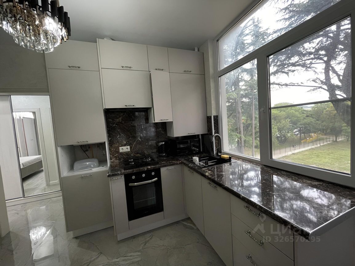 Сдается квартира новая , с видом на горы с новым дизайнерским ремонтом и мебелью с оборудованной кухней, газовая плита, микроволновая печь , духовая печь, посуда мойка, и все кухонные принадлежности.