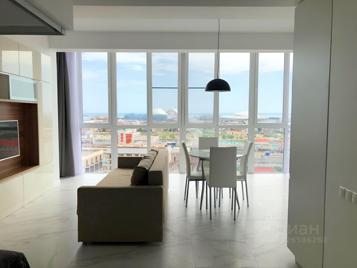 С балкона можно наблюдать за всем Олимпийским парком, поющие фонтаны, арена Фишт, самый красивый отель Богатырь, и т д. Вид шикарный фото и видео не передает этой всей красоты