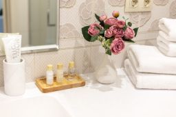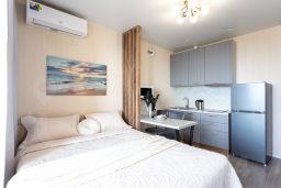 — Квартира с хорошим ремонтом, полностью меблирована и оборудована всем необходимым для комфортного проживания: шкаф, кондиционер, стиральная машина, телевизор, холодильник, Wi-Fi, постельное белье, полотенца, посуда, фен, утюг, гладильная доска, пылесос и сушилка.