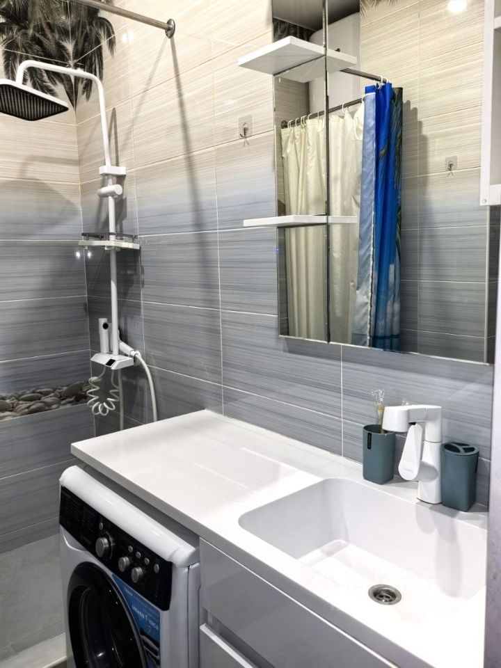 В квартире сделан современный евроремонт. В комнате и на кухне есть вся необходимая мебель. Для вашего удобства установлены кондиционер, холодильник, телевизор и стиральная машина. Санузел совмещённый, оборудован душевой кабиной. Здесь вы найдёте всё для комфортного проживания.