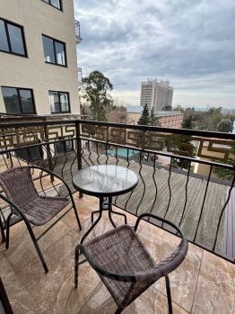 Максимально комфортное проживание на побережье Черного моря. Рядом детская площадка и красивые статуи известного скульптора. Много красивой растительности вокруг. Будете чувствовать единение с природой! Можно кормить белочек и наслаждаться красивыми видами со всех 3-х балконов квартиры. Два из них оборудованы мебелью.