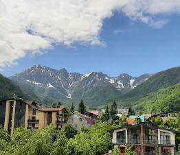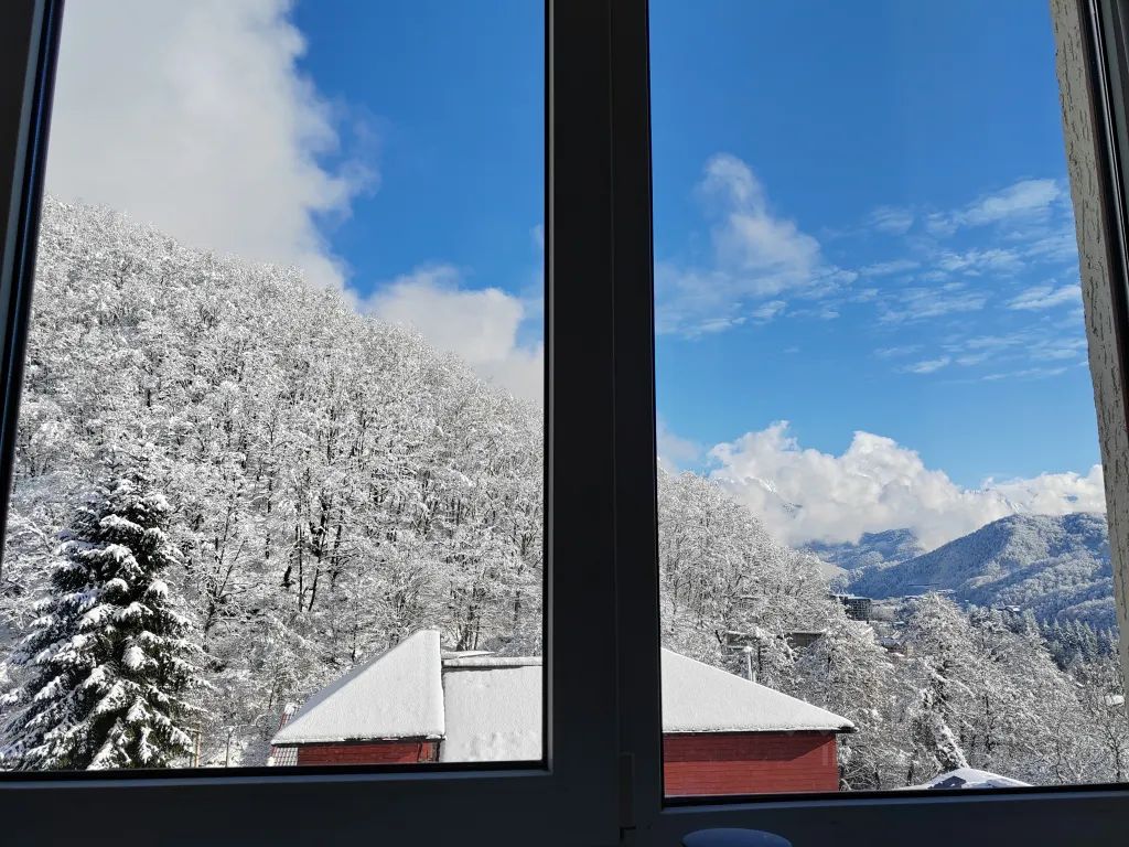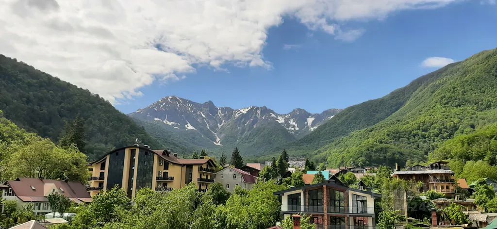 Квартира в центре Красной Поляны, 40,2 кв., евро-двушка с изолированной спальней, 5 этаж, лоджия, панорамные пейзажи на гору Ачишхо и в сторону пирамиды.