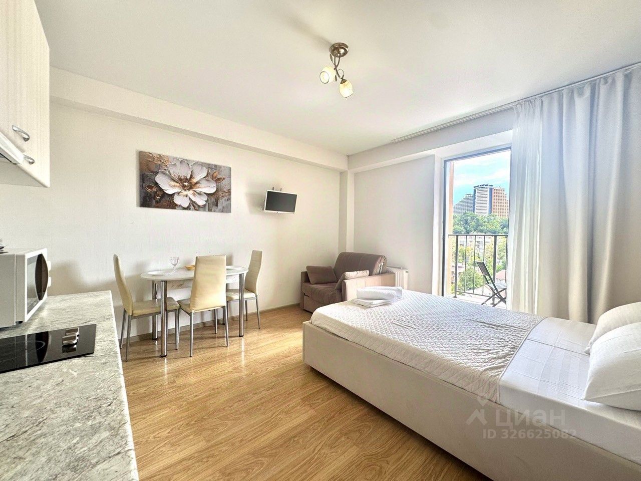 Студия расположена на 7 этаже ( есть много и других вариантов на разных этажах). Цены на летний период по запросу.