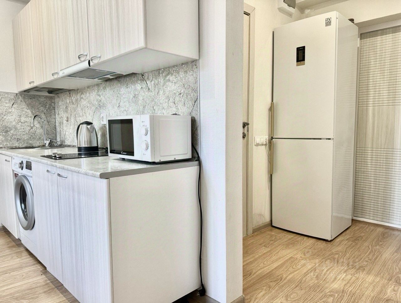 Полностью укомплектованная кухня, бытовая техника, фен.