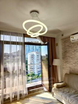 Сдается стильная студия в Сочи на Полтавской улице, 30Б. Квартира расположена на 14 этаже 15-этажного дома, построенного в 2014 году. Общая площадь квартиры составляет 30 кв. м, из которых 20 кв. м — жилая площадь, а кухня занимает 2 кв. м. Высота потолков — 2,84 метра, что создает ощущение простора.