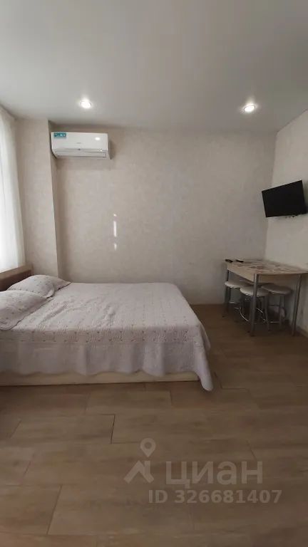 Студия для комфортного отдыха. Расстояние до моря 600 м. Пляж "Огонёк". В шаговой доступности все сетевые магазины, кафе, столовые, рестораны, рынок "Апельсин". Закрытая территория, бесплатная автостоянка.