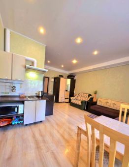 - стиральная машина, холодильник, чайник, кондиционер, плита, свч, утюг, фен, тв, wi-fi 100 мб, полный набор посуды на любой случай жизни.