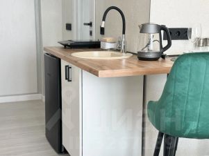 В кухонной зоне: холодильник, микроволновка, варочная панель, чайник, необходимая посуда, столовые приборы и принадлежности