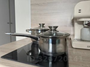 холодильник, варочная панель, микроволновая печь, чайник, необходимая посуда, столовые приборы и принадлежности