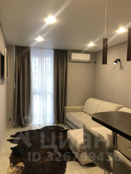 Квартира-студия 22 квадратных метра с панорамным окном и видом на горы выполнена в современном стиле с дизайнерским ремонтом. Имеется вся необходимая бытовая техника, мебель и посуда, спальные принадлежности. Ухоженная придомовая территория, ресепшен с консержем. В вечернее время красивая подсветка, которую видно издалека. Удобный выезд на объездную дорогу, 7 минут на машине до центра Сочи, 30 минут до аэропорта, 15 минут до Бальнеологического курорта Мацесты.