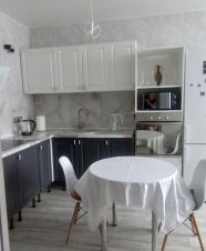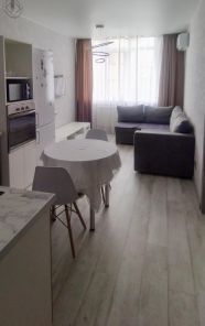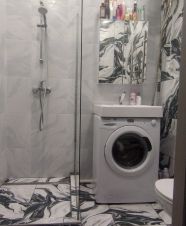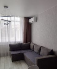 В квартире сделан современный ремонт, в каждой комнате есть необходимая мебель для комфортного проживания. Кухня оборудована всем необходимым: холодильник, просторные шкафы и удобная обеденная зона. Из техники в квартире также есть кондиционер и телевизор. В ванной комнате установлена душевая кабина и стиральная машина.