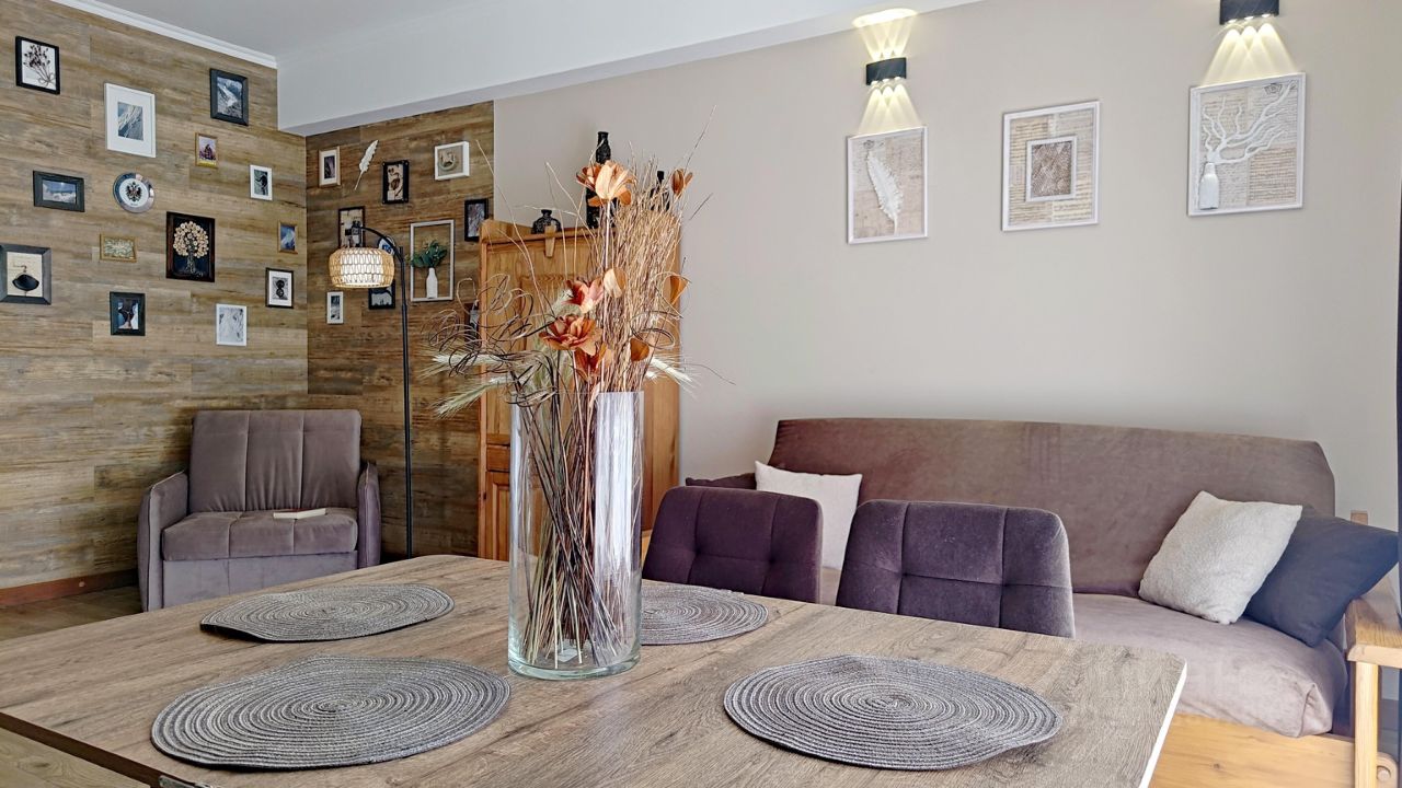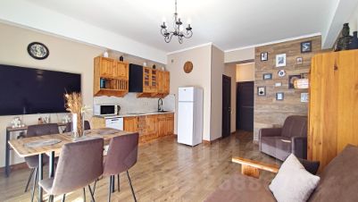 Доступная роскошь! Балкон с панорамой на величественные горы. Просторный апартамент в теплых оттенках натурального дерева в интерьере, для вашего спокойного отдыха.