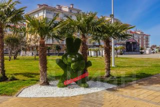 Современная трёхкомнатная квартира площадью 77 м² расположена на втором этаже 4-этажного дома с балконом и лоджией, в тихом зелёном квартале федеральной территории Сириус.