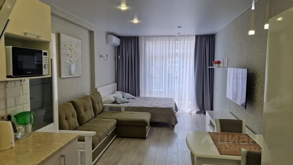 Квартира чистая, светлая, с балконом, с прекрасным ремонтом и техникой, теневая сторона с видом на реку, на горы и в сторону моря.