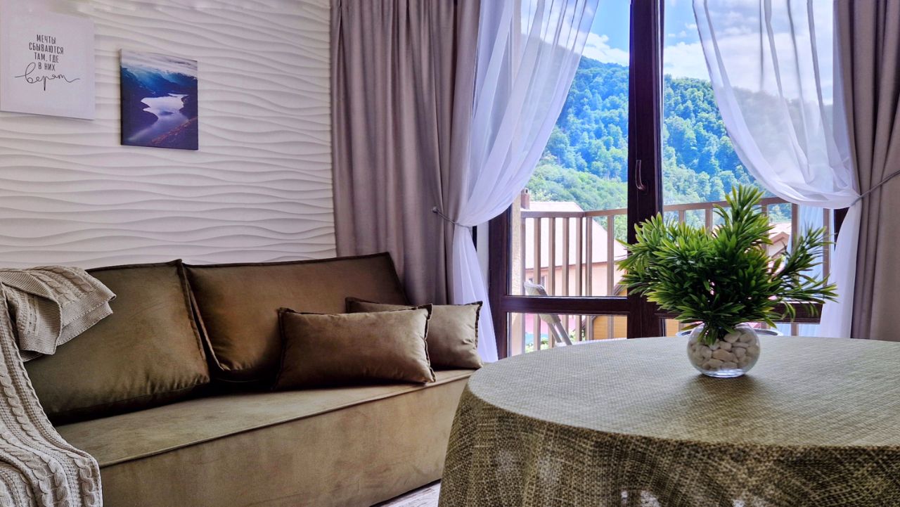 Новая уютная квартира с потрясающими видами на горы и закат и шикарным расположением в поселке Красная поляна вдали от шума и суеты.