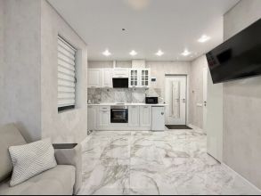 В квартире есть все необходимое для комфортного проживания: выделенная зона спальни с двуспальной кроватью, зона гостиной с диваном и обеденным столом, оборудованная кухня, санузел с душем.