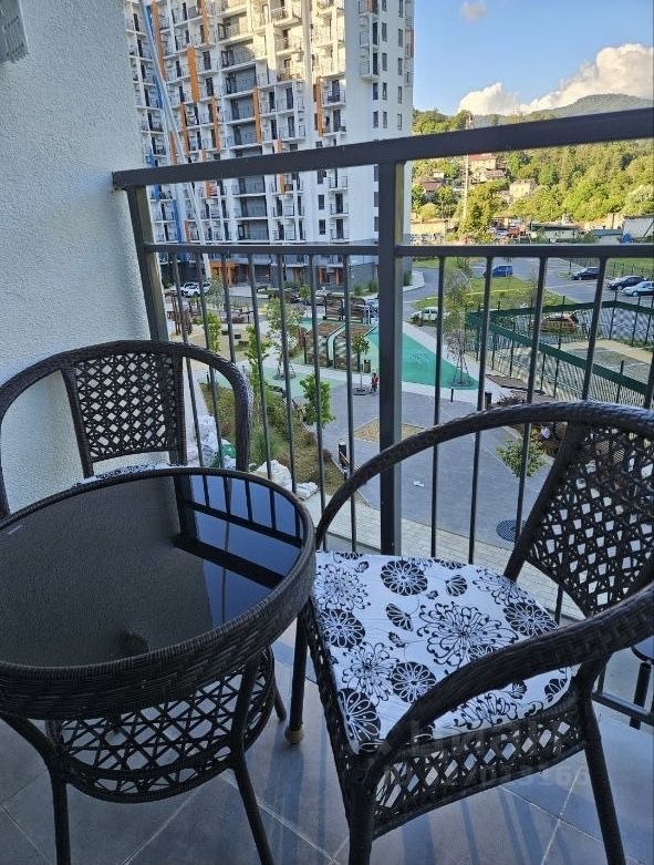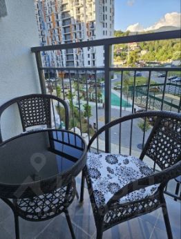 Балкон с видом на горы и внутренний двор! Мебель на балконе присутствует.