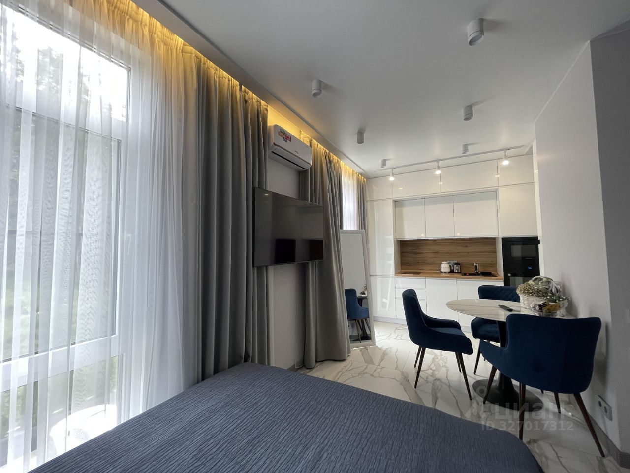 Сдаётся в аренду уютная студия с евроремонтом, современная мебель на кухне и в комнате создают уютную атмосферу. Окна выходят во двор, поэтому в квартире всегда тихо и спокойно. Совмещённый санузел оборудован душевой кабиной. В наличии вся необходимая техника: кондиционер, холодильник, посудомоечная и стиральная машина с сушкой, микроволновка, духовой шкаф.
