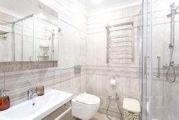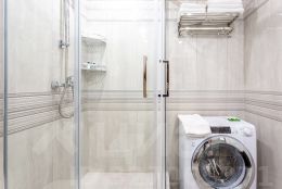 Совмещённый санузел с душевой кабиной, стиральной машиной, феном.