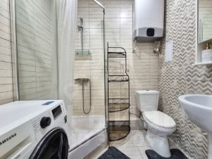 Квартира полностью укомплектована: диван-кровать, двуспальная кровать, кухня, ванная комната, вся необходимая мебель и техника. Отличный вариант для отдыха — лучше гостиничного номера!