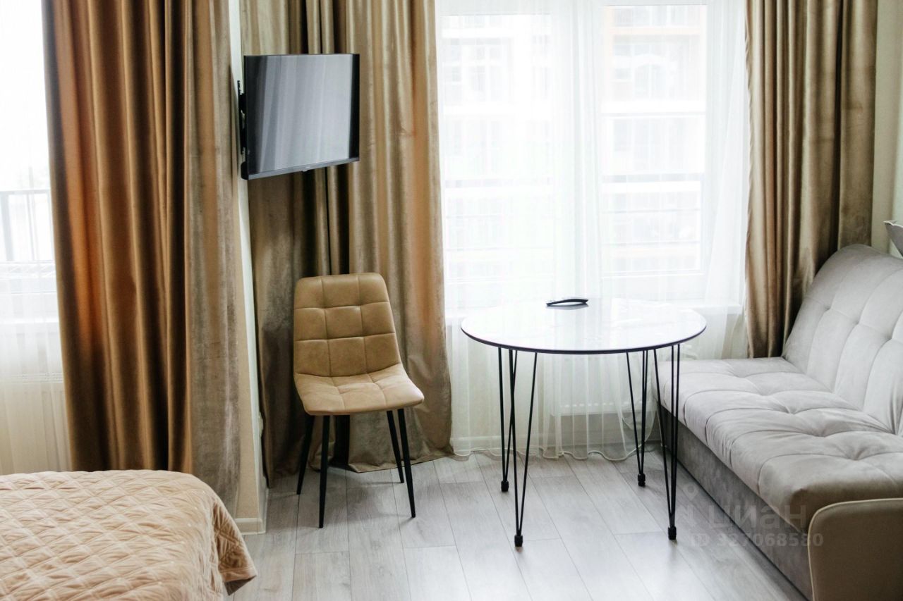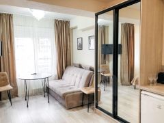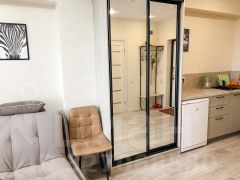 Сдается уютная студия в Дагомысе (первая береговая линия). До моря 3 минуты пешком. Широкая береговая линия, чистое море, множество кафе баров, игровых площадок. Есть все необходимое для жизни. Магазины, остановка в шаговой доступности. До центра Сочи 15 минут на ласточке (станция рядом), на маршрутке 20-25 минут. Охраняемая территория, есть детская и спортивная площадки, уличные тренажеры. Квартира укомплектована всем необходимым для комфортного проживания. Мебель: кровать (160х200), диван (140х200), обеденная зона, кухонная зона (оборудованная), стенка-гардеробная. Бытовая техника: чайник, микроволновка, варочная поверхность, кондиционер, стиральная машина, холодильник, wi-fi, телевизор с приставкой tv. Ванная комната: унитаз, раковина, душевая. Удобства: горячая/холодная вода, полотенца, постельное бельё, посуда, гладильная доска, утюг, фен, сушилка для белья. Депозит возвратный (5000). Сдается на срок от 3 дней