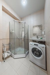 Диван-кровать, двуспальная кровать, варочная панель, холодильник, кондиционер, шкаф, микроволновая печь, электрический чайник, газовый котел, стиральная машинка, телевизор, необходимая посуда, душевая.