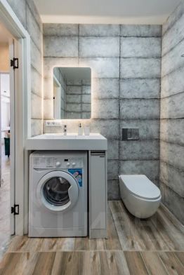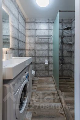 Совмещённый санузел с душевой кабиной, стиральной машиной, феном.