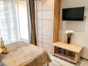 Сдается уютная студия в Дагомысе (первая береговая линия). До моря 3 минуты пешком. Широкая береговая линия, чистое море, множество кафе баров, игровых площадок. Есть все необходимое для жизни. Магазины, остановка в шаговой доступности. До центра Сочи 15 минут на ласточке (станция рядом), на маршрутке 20-25 минут. Охраняемая территория, есть детские и спортивные площадки, уличные тренажеры. Квартира укомплектована всем необходимым для комфортного проживания. Мебель: двуспальная кровать 160*200 + раскладное кресло 90*190, обеденная зона, кухонная зона (оборудованная), стенка-гардеробная. Бытовая техника: чайник, микроволновка, кондиционер, стиральная машина, холодильник, wi-fi, телевизор с приставкой tv. Ванная комната: унитаз, раковина, душевая. Удобства: горячая/холодная вода, полотенца, постельное бельё, посуда, гладильная доска, утюг, фен, сушилка для белья. Депозит возвратный (5000). Сдается на срок от 3 дней.