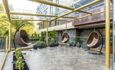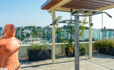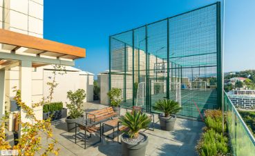 На крыше находится сезонный бассейн, зона отдыха с шезлонгами и спортивная площадка для игр в футбол, баскетбол и большой теннис.