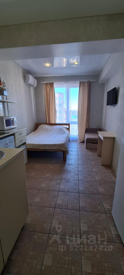 Квартира с евроремонтом, полностью готова для комфортного проживания. В студии есть вся необходимая мебель, как на кухне, так и в комнате. Для вашего удобства установлены кондиционер, холодильник, телевизор и стиральная машина. Санузел совмещенный, оборудован современной душевой кабиной.