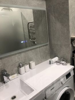 Имеется вся необходимая мебель ( большой раздвижной диван 270 см шириной с поддоном для спальных принадлежностей, шкаф с 3-мая отсеками для хранения вещей, обуви и чемоданов) и бытовая техника ( встроенный 2-х камерный холодильник , встроенная посудомоечная машина, встроенная мощная телескопическая вытяжка, 2-х комфорочная варочный панель, микроволновка, сплит-система, телевизор, парогенератор с гладильной доской, стиральная автомат-машина и др)