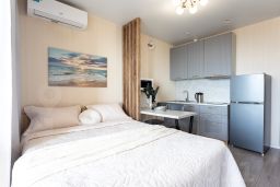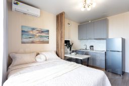 Квартира с хорошим ремонтом, полностью меблирована и оборудована всем необходимым для комфортного проживания: шкаф, кондиционер, стиральная машина, телевизор, холодильник, Wi-Fi, постельное белье, полотенца, посуда, фен, утюг, гладильная доска и сушилка.