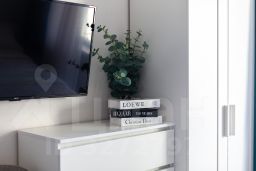 Квартира с хорошим ремонтом, полностью меблирована и оборудована всем необходимым для комфортного проживания: шкаф, кондиционер, стиральная машина, телевизор, холодильник, Wi-Fi, постельное белье, полотенца, посуда, фен, утюг, гладильная доска, пылесос и сушилка.