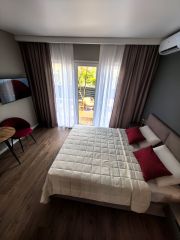 Сдаются стильные, уютные аппартаменты в поселке городского типа Сириус, где есть все необходимое для комфортного проживания: сделан хороший новый ремонт, кровати и матрацы фирмы Аскона, ортопедические подушки, пуховые одеяла, качественная посуда, собственная терраса, где можно насладиться утренней чашечкой кофе или бокальчиком вина на закате. Сам двор утопает в зелени южных плодовых деревьев: мандарины, Памела, лимон, гранат, инжир, мушмула, хурма, фейхоа и не только