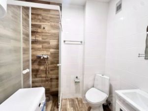 В квартире есть все необходимое для комфортного проживания. Просторная комната обставлена современной мебелью. Кухня укомплектована всеми необходимыми элементами, включая холодильник и плиту. В ванной комнате установлена душевая кабина, что позволяет с комфортом принимать водные процедуры. В жаркие дни вам будет приятно воспользоваться кондиционером, а для досуга есть телевизор и доступ к интернету.