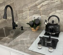 В квартире сделан дизайнерский ремонт, есть вся необходимая мебель как на кухне, так и в комнате. Оснащена современной техникой: кондиционер, телевизор, холодильник и стиральная машина. Санузел совмещённый, оборудован душевой кабиной, что создаёт дополнительный комфорт.